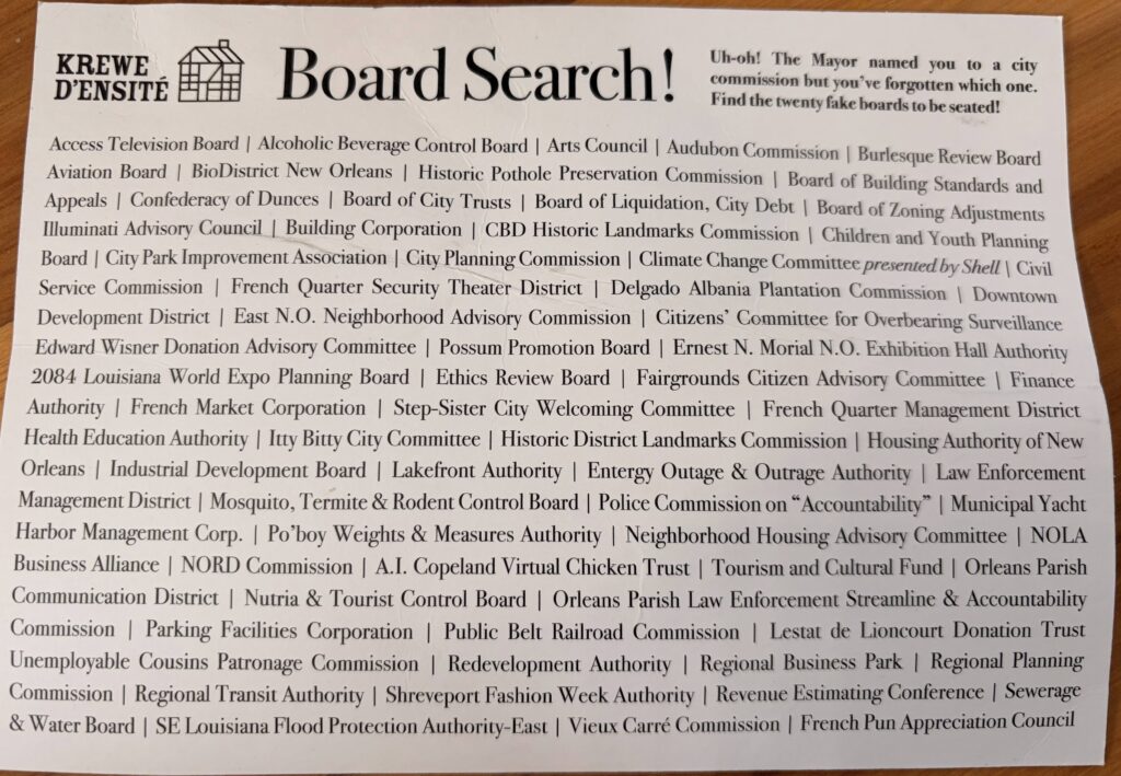 This postcard that was handed out at the Krewe du Vieux parade is so clever. I bet it was fun to make, too. It’s such a sample of the creativity down here in New Orleans. Just thought I’d share.
